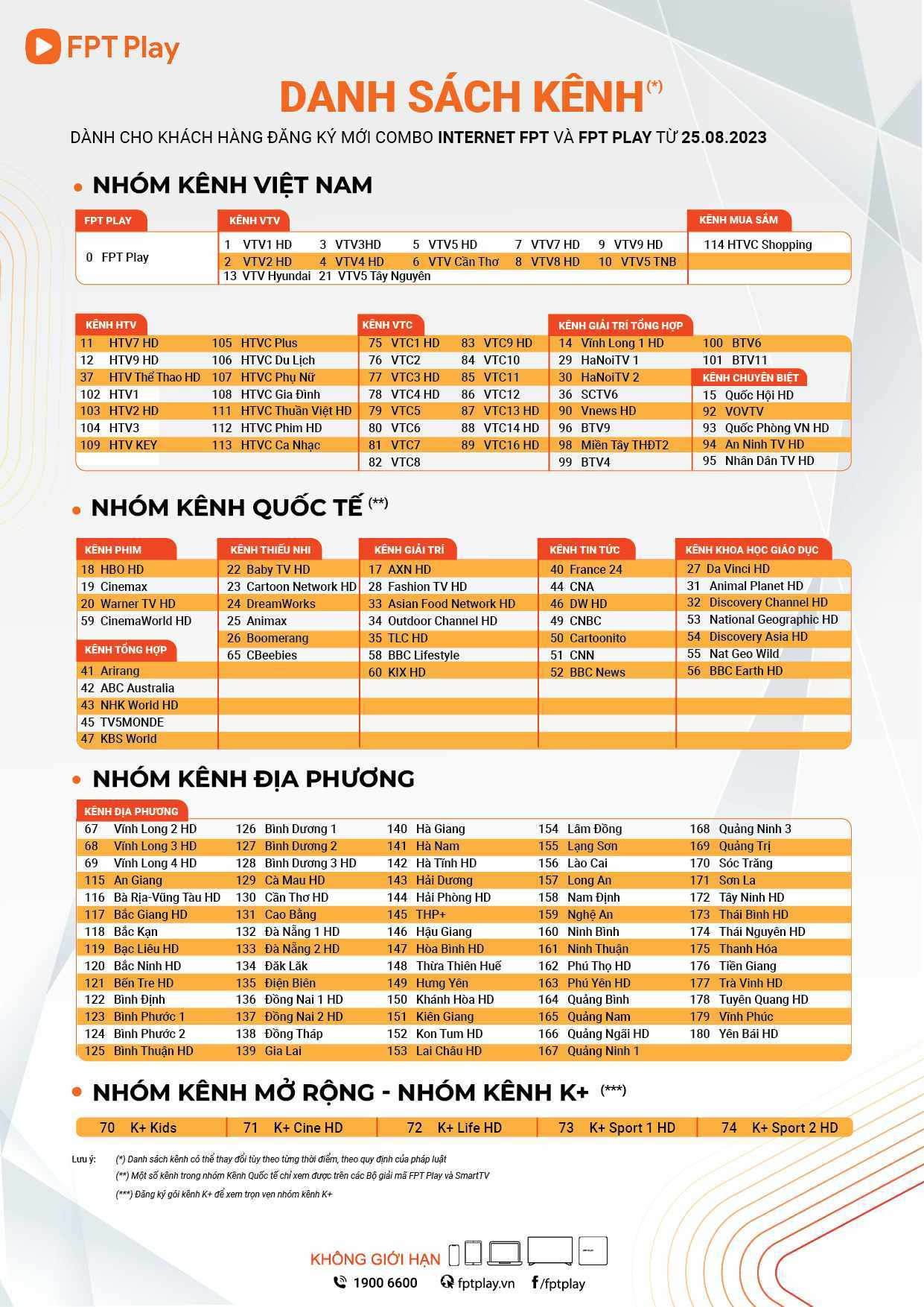 | – Bao gồm gần 160 kênh truyền hình trong nước và quốc tế (trong đó có gần 60 kênh chuẩn HD).